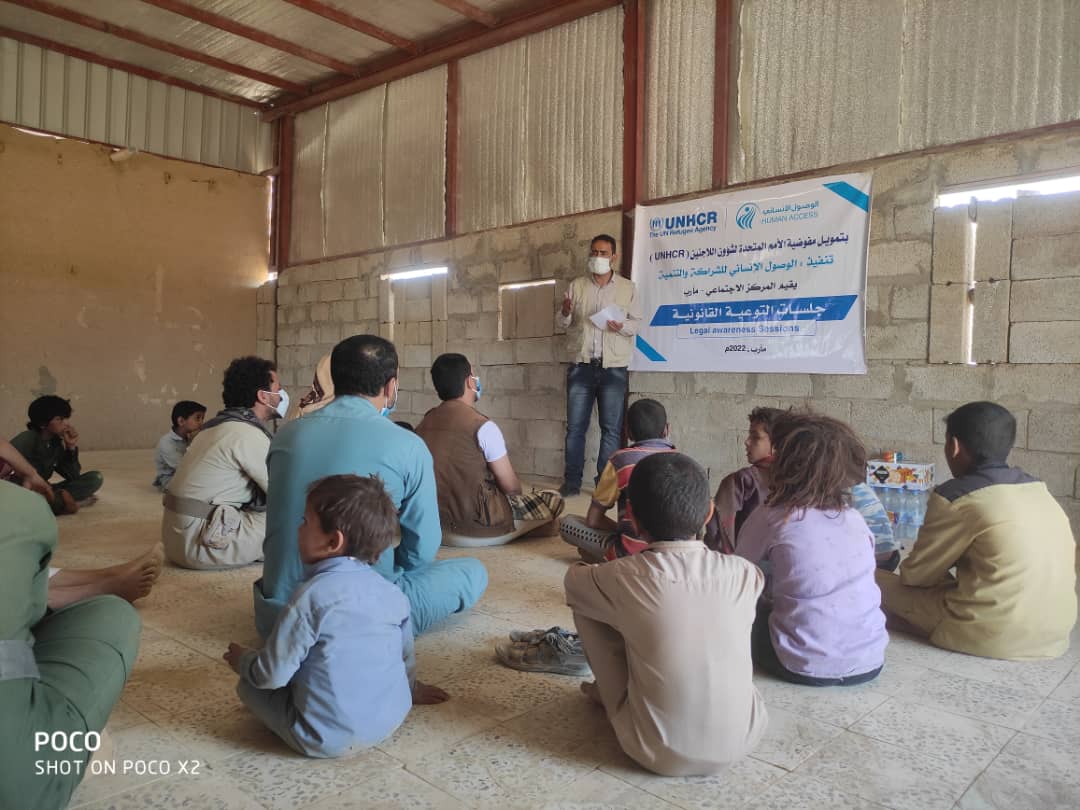 HUMAN ACCESS, in partnership with UNHCR, organized several legal awareness and education sessions targeting IDPs in Marib Governorate. The first session targeted a number of displaced educators in Al-Quoz camp in Marib city, in an effort to increase their awareness of laws and rights. It addressed the definition of work, the worker and the employer, the legal rights that the worker and the employer enjoy, and a mechanism for reporting and receiving complaints.