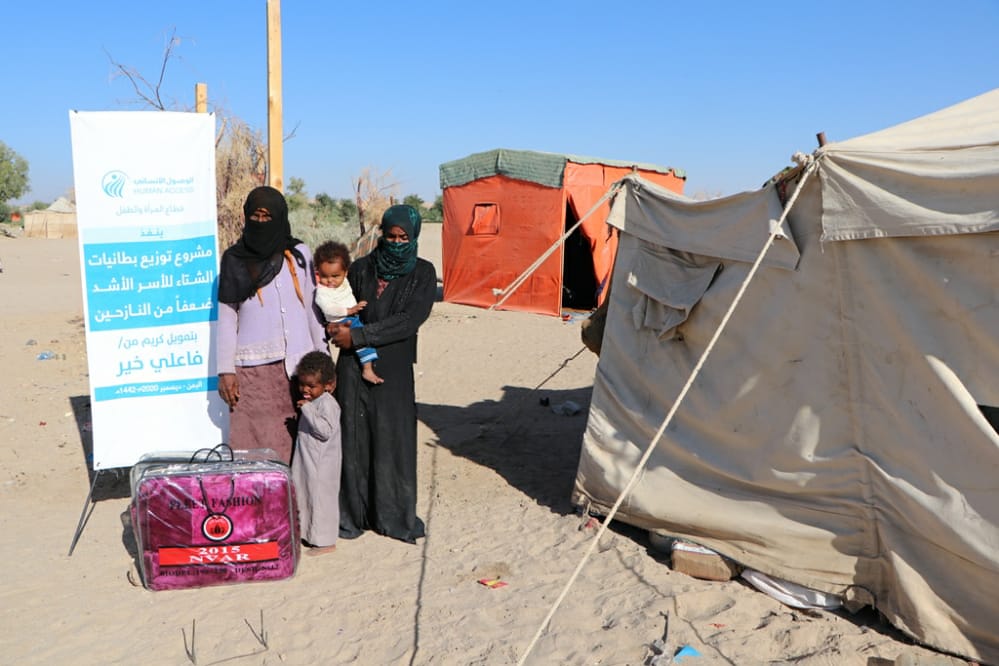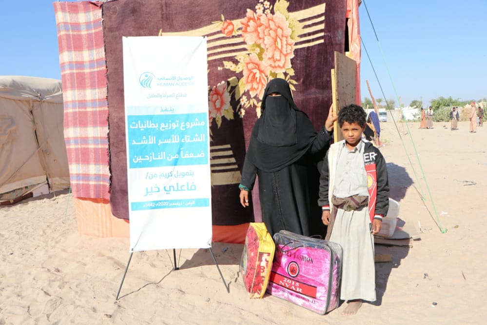 In light of the difficult economic conditions that our country is going through and its increasing hardship in the winter season on the displaced, the poor and the needy, HUMAN ACCESS - the Woman and Child Sector - implemented a project to distribute winter blankets to the most vulnerable families of the displaced, with the aim of contributing to alleviating the hardship of winter for displaced families from the harsh winter cold.