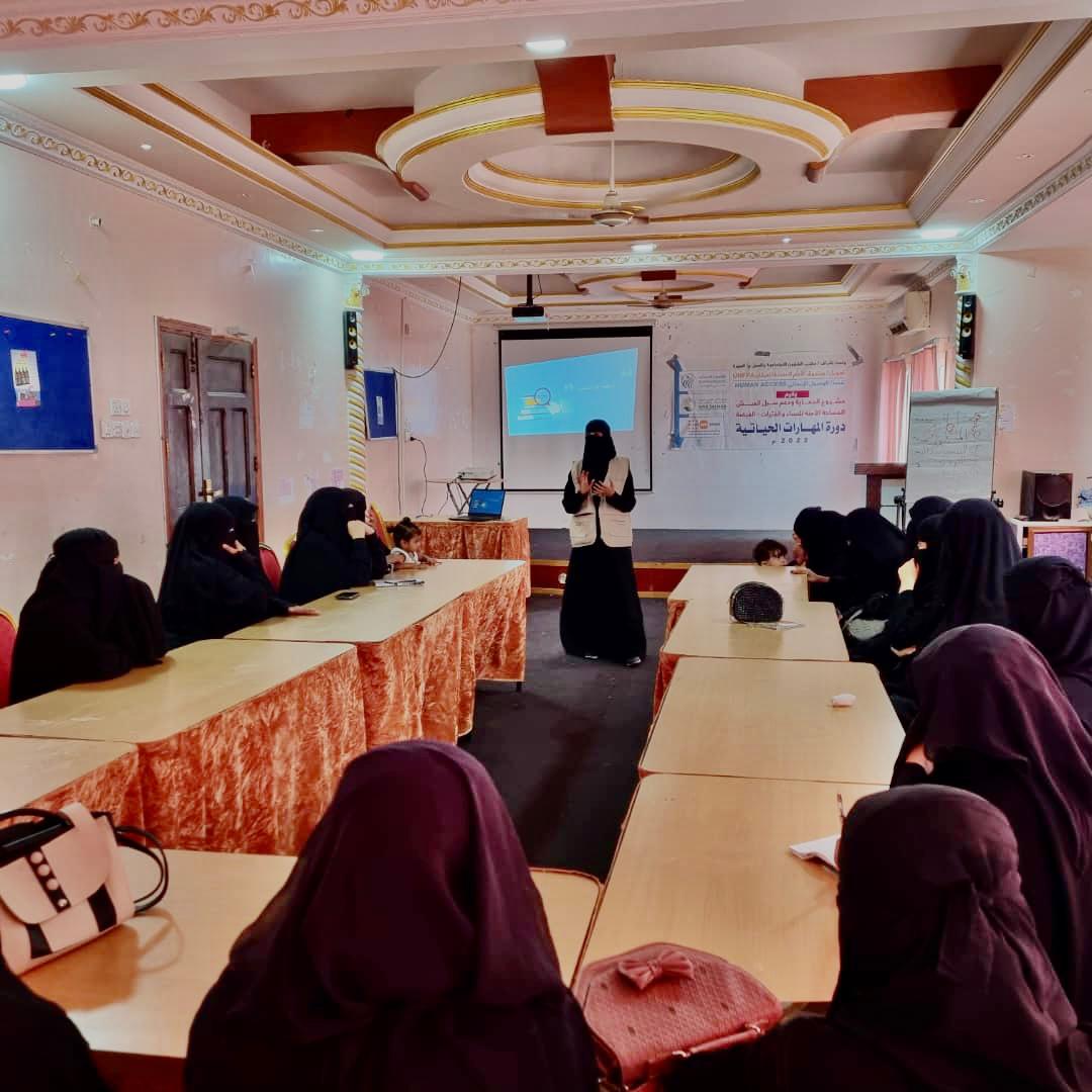 The Safe Space Project for Women and Girls, affiliated to HUMAN ACCESS, funded by the United Nations Population Fund (UNFPA), implemented two training courses in the fields of life skills, marketing and financial, benefiting a number of women and girls trainees in Ataq district, Shabwa governorate and Al Ghaydah district, Al-Mahra governorate. The two training sessions contributed in providing the trainees with the required knowledge and skills in the fields of marketing, controlling accounting and financial operations, empowering them economically and enhancing their abilities to carry out various life and economic activities.